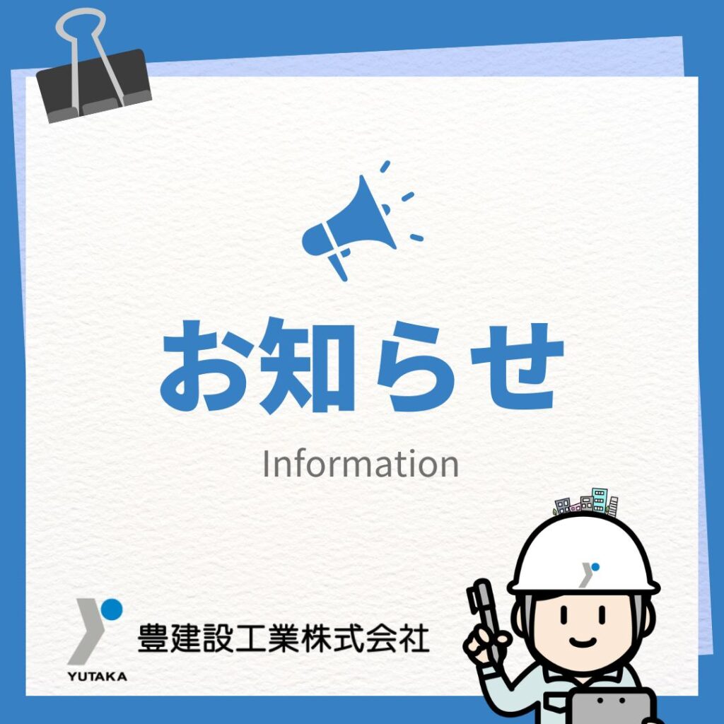 誠に勝手ながら、豊建設工業株式会社は、5.3(土)から5.6(火)の期間はG.W休暇の為休業させていただきます。